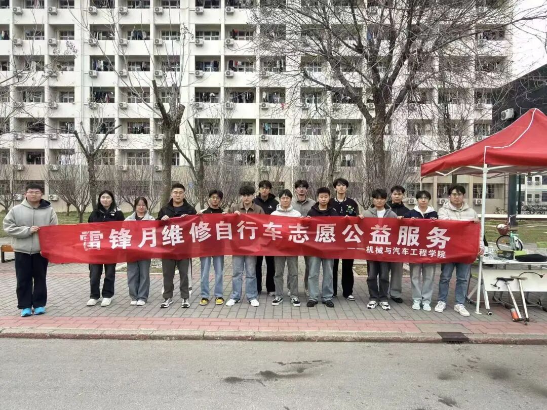于2026年3月15日,在东校区群星11号楼旁大屏幕下,开展了维修自行车志愿服务活动,用专业技能为师生解决自行车故障问题,让雷锋精神在实践中闪光。